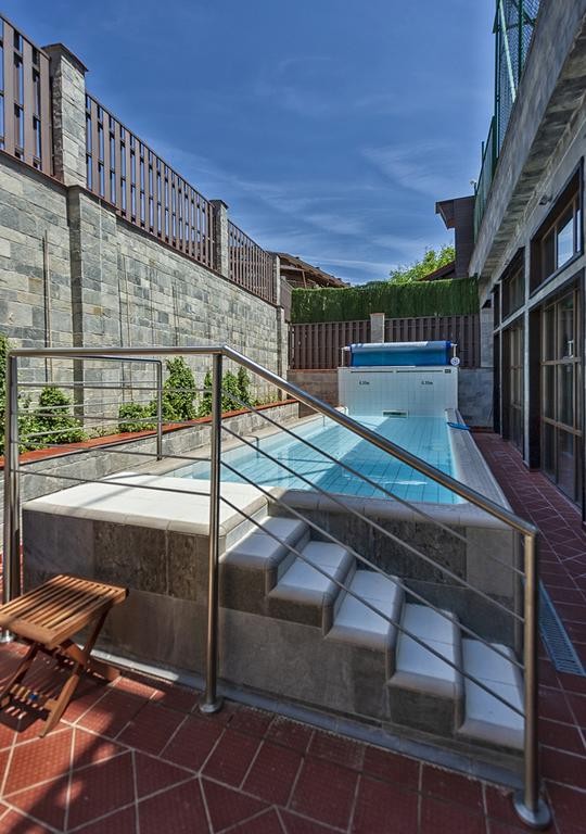 Sadržaj hotela 7 Pools Boutique Hotel & Spa: recepcija, restoran, lobi, lobi bar, spa bar, room service, spa centar, kompleks zatvorenih i otvorenih bazena i đakuzija (jedan bazen dimenzija 22x8m/ hidrotonik bazen 12x5m/dečiji bazen 14x4m, đakuzi za 1o osoba), 2 finske saune, infra-red sauna, hladan tuš, tursko kupatilo, tepidarijum, vip spa apartman, slana soba, fitnes, salon lepote, dečji klub, internet, parking, minibus prevoz do gondole.