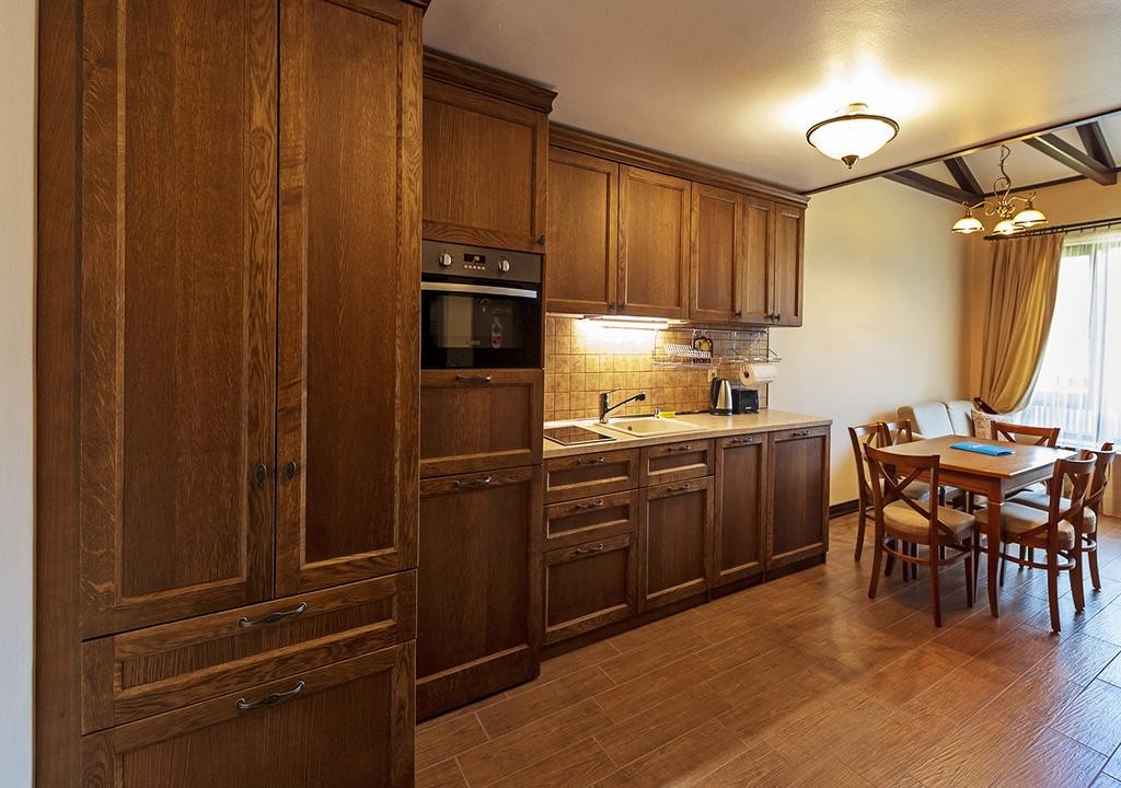 Jednosobni apartman za smeštaj 2-4 osobe (2+2): spavaća soba sa dva singl ležaja, dnevni boravak sa sofom na rasklapanje, opremljena kuhinja, kupatilo, terasa.