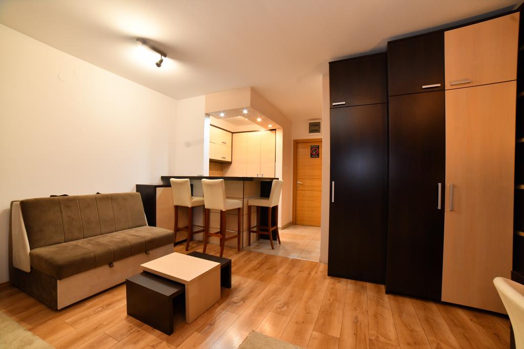 - Studio 2+1 (max 3 osobe): moderno opremljen studio (različitih kvadratura od 25-30m2 ) sa kuhinjom, kupatilom ,francuski ležaj za 2 osobe + fotelja ili trosed na razvlačenje kao pomoćni ležaj, prateća oprema: LCD TV, telefon, sef, minibar, wireless Nalazi se u objektu Zoned 1.