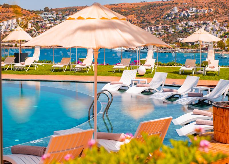 Baia Bodrum Hotel 5* (Bodrum, Turska) - nalazi se u mestu Gündoğan, 1km od centra msta,30km od centra Bodruma i 48km od aerodroma. Hotel je otvoren 2004.godine, a poslednji put je renoviran 2022. godine . Smešten u prirodnom ambijentu, nalazi blizu poznate marine u mestu Yalıkavak.Gostima su na raspolaganju glavni restoran, 2 à la carte restorana, otvoreni bazen, zatvoreni bazen, Spa centar i fitness centar. Za decu tu su dečiji bazen sa aqua parkom i mini club.