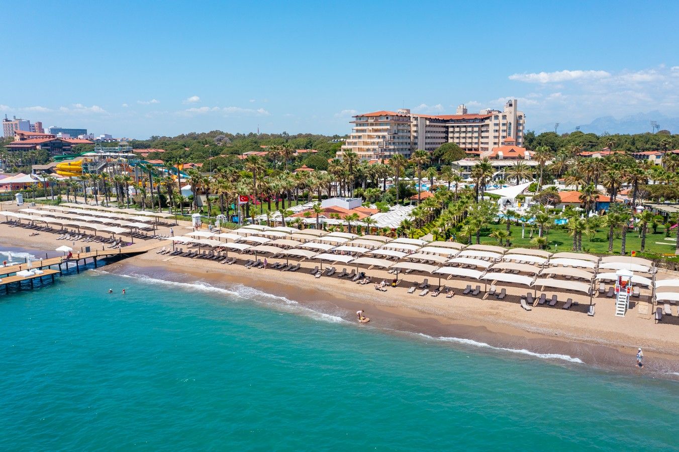 Glavni restoran (unutrašnji dio i terasa), 4 a la carte restorana (riblji, azijski, italijanski i gril-rezervacija se plaća), 7 barova (jedan radi 24h), 2 teniska terena, 3 fudbalska terena, 5 otvorenih bazena, vodeni park za odrasle (8 tobogana), dečiji bazen, vodeni park za decu (6 tobogana), mini zoo vrt, tursko kupatilo, sauna, fitness centar, kino sala, diskoteka, stoni tenis, odbojka na plaži, mini fudbal, mini golf, wellness centar, rent-a-car, WiFi na cijeloj teritoriji hotela, suvenirnica, mini klub (4-7 god.), junior klub (7-13 god.), igraonice, dečiji meni. Plaća se: video igre, bilijar, motorni sportovi na vodi, najam teniskih rekvizita i osvetljenje teniskih terena, masaže, jacuzzi, usluge pranja i hemijskog čišćenja veša, usluge doktora i dadilje.