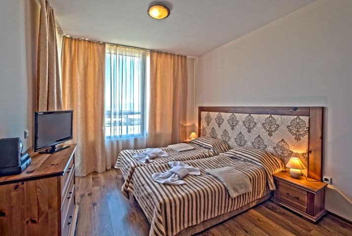 - Jednosobni apartman za smeštaj 2-4 osobe (2+2): 56-66 m2, spavaća soba sa francuskim ležajem ili dva odvojena ležaja, dnevni boravak sa sofom na rasklapanje, kompletno opremljena kuhinja, kupatilo sa fenom za kosu, sa balkonom ili bez balkona.