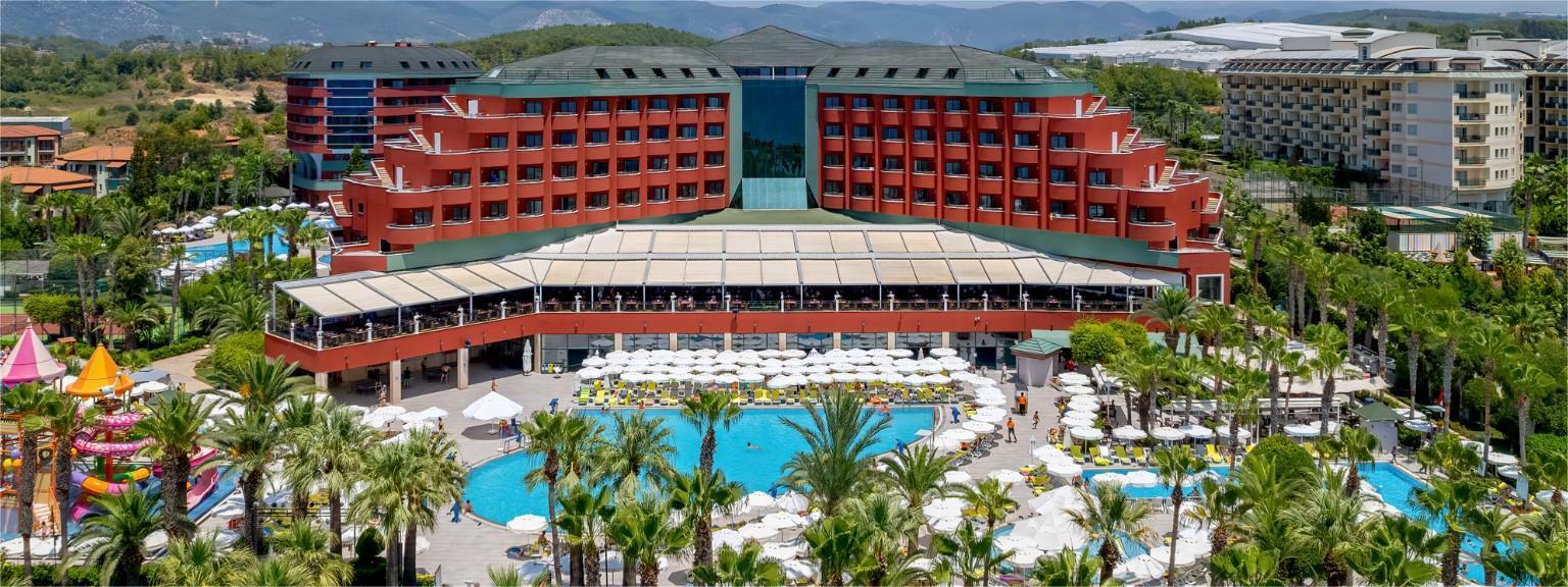 Delphin Deluxe hotel 5* se nalazi na 90 kilometara od aerodroma u Antaliji, 30 km od Alanje, a na samoj obali mora. Hotel je sagrađen 2001., a renoviran 2013. godine. Hotel se prostire na površini od oko 50.000 m2.