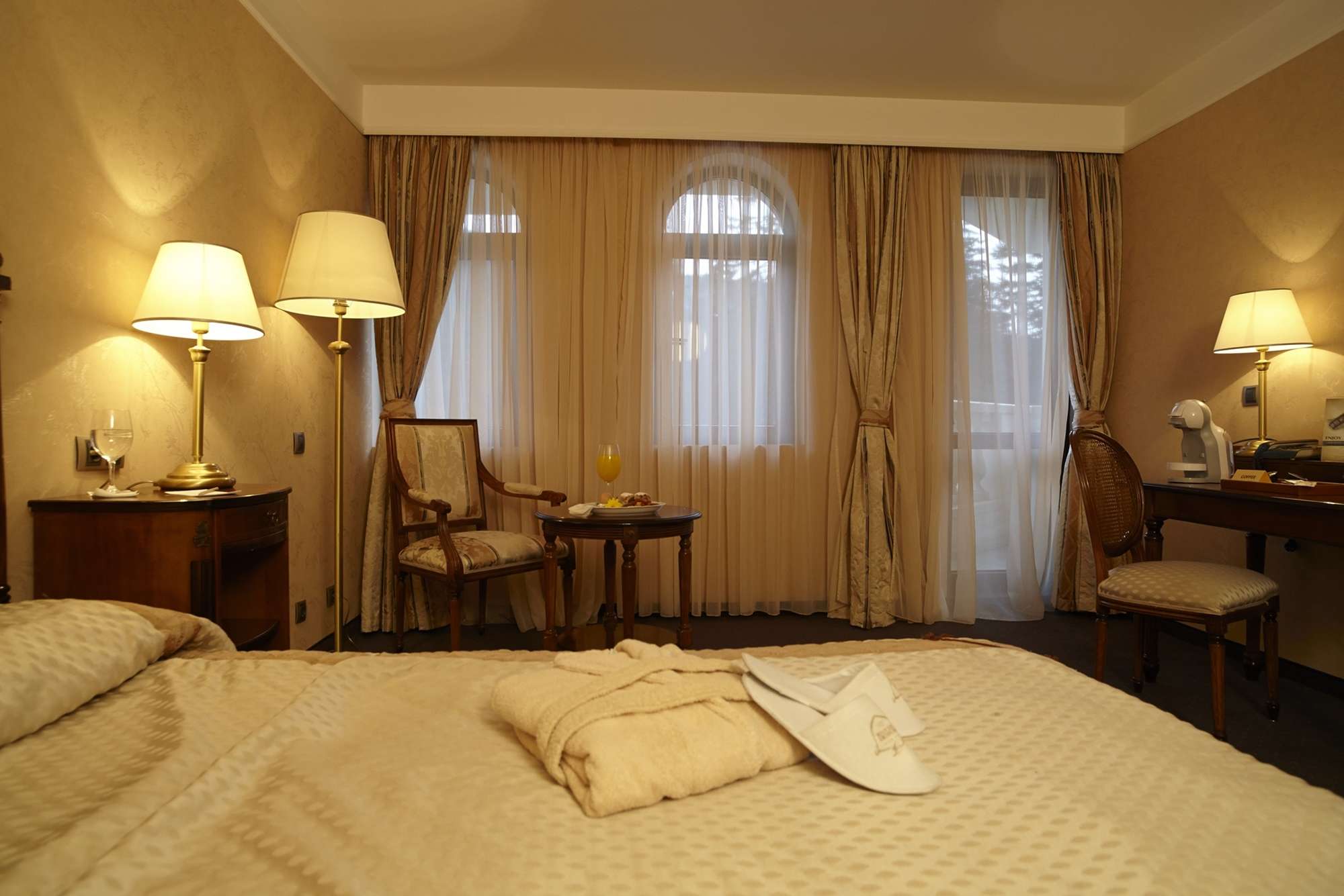 Dvokrevetna deluxe soba (2+1) za 2-3 osobe (18 m2): king size francuski krevet, bez pomoćnog ležaja, LCD SAT TV, telefon, sef, mini bar, luksuzno opremljeno kupatilo sa tuš kabinom ili kadom, balkon. Smeštaj za max dve osobe i jedno dete do 13.99 god