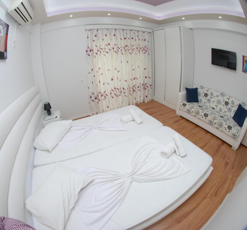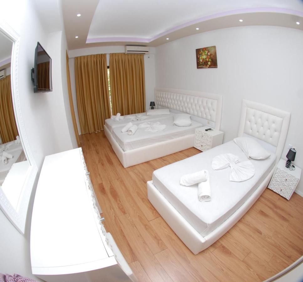 Sve sobe su klimatizovane i poseduju balkon s kog se pruža delimičan ili direktan pogled na more. Svaka smeštajna jedinica sadrži kablovsku televiziju, frižider i kupatilo sa tušem.