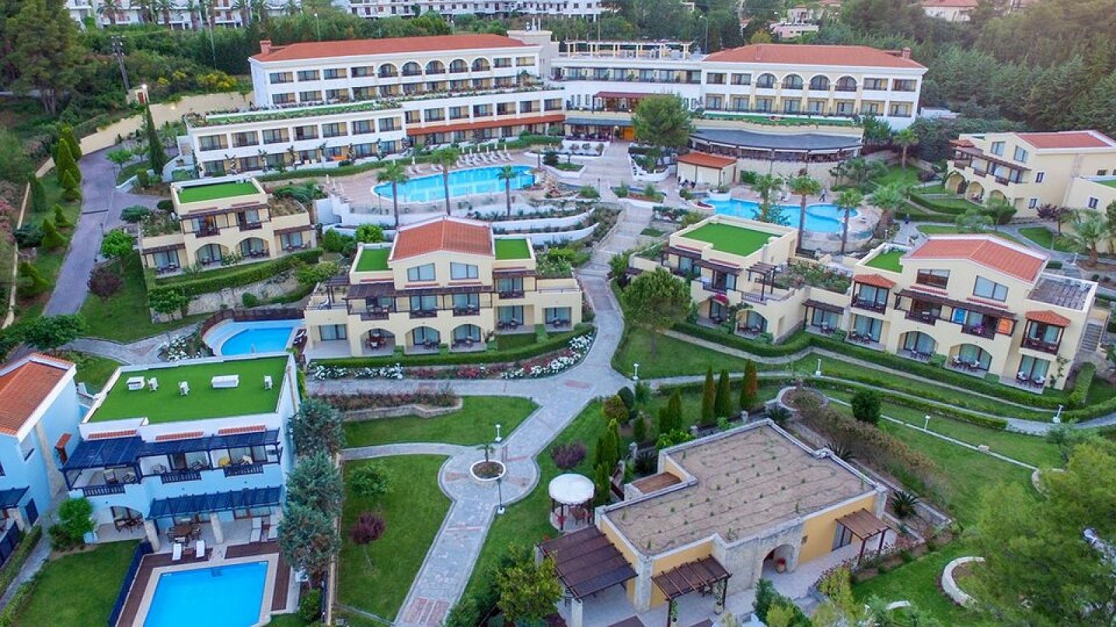 LOKACIJA: Luksuzni hotel nalazi se na 3 km udaljenosti od Kalitee i 85 km od Soluna i pripada grupi Aegean Star Hotels. Sastoji se od 2 centralne zgrade i kompleksa bungalova sa obe strane puta, povezanih podzemnim prolazom.