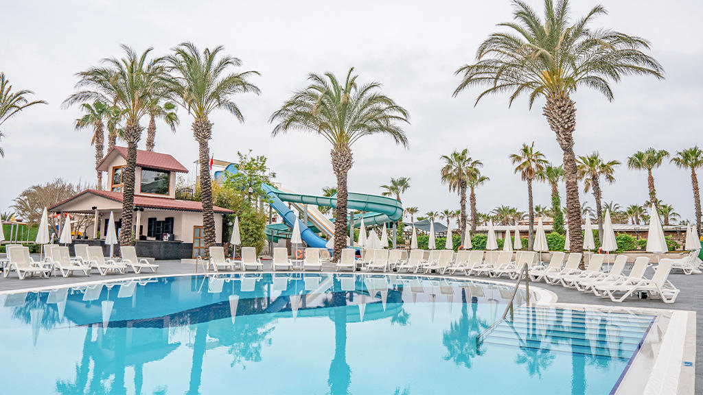 Hotel u svom sastavu poseduje zatvoreni otvoreni bazen za odrasle i decu, 3 tobogana, fitnes centar, sauna, tursko kupatilo, stoni tenis, odbojka na plaži, tokom dana organizuju se zabavni programi, takmičenja pored bazena i na plaži, večernji šou programi, mini klub za decu uzrasta od 4 do 14 godina. Prema pravilima hotela posebno se doplaćuju: SPA centar, masaža, sportovi na vodi, kozmetički salon, bilijar, soba za igru, usluga pranja veša, usluga lekara, čuvanje dece, prodavnice, frizer, telefon, fax, internet kafe, kompjuterske igrice, rent a car. Glavni restoran, barovi u okviru hotelskog kompleksa, disko klub i A'la Carte restoran (restoran sa jelima sa roštilja, riblji). Privatna plaža hotela je peščana sa suncobranima i ležaljkama. Peškiri za plažu dostupni uz depozit.