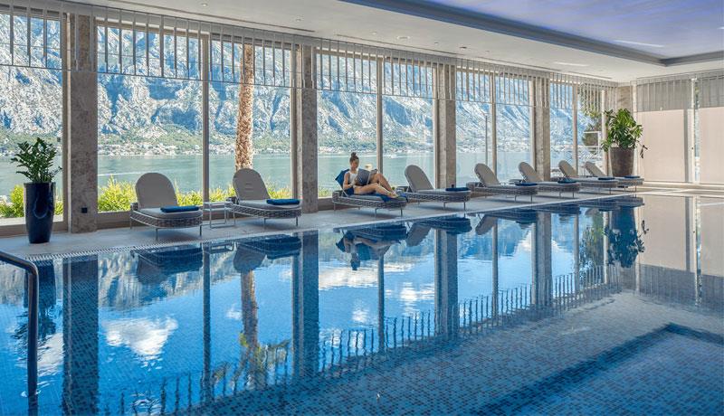 Sadržaj: Hotel Blue Kotor Bay poseduje recepciju, glavni restoran Blue, a la carte restoran na plaži, terasu sa pogledom na zaliv, salu za konferencije, wellness centar, spa centar, fitnes centar, dugu privatnu peščanu plažu ispred hotela (sa ležaljkama i suncobranima), privatni parking, saunu, masažu, hamam, kozmetičke tretmane.