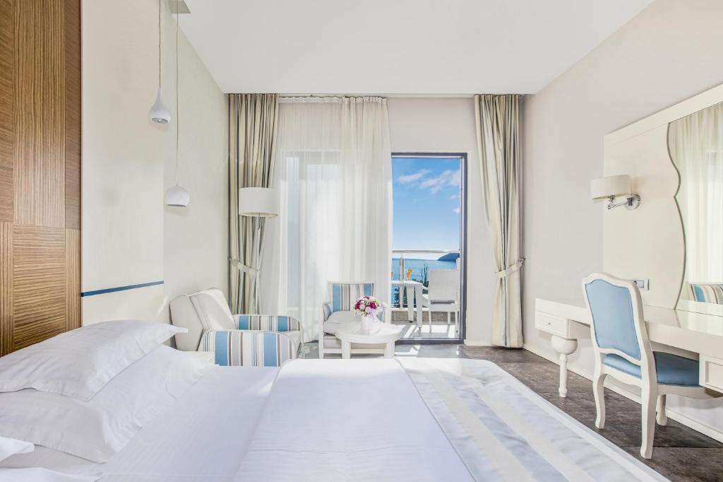Dvokrevetna soba - Površina 25-35m2, francuski ležaj/ odvojeni kreveti, fotelja, balkon. Maksimalni kapacitet 2 odraslih + 1 adl/diete (fotelja na razvlačenje). Klima, sef, telefon, mini-bar (svakodnevna dopuna), fen, TV (LCD), balkon ili terasa. Kupatilo sa tuš kabinom, papuce i bade-mantili (u svakoj sobi). Pod: tepisi/kamene ploce. Čišćenje-svakodnevno promena posteljine u toku boravka, menjanje peškira-svakodnevno. Room service, besplatan Wi-Fi Internet.