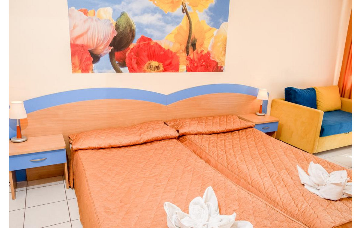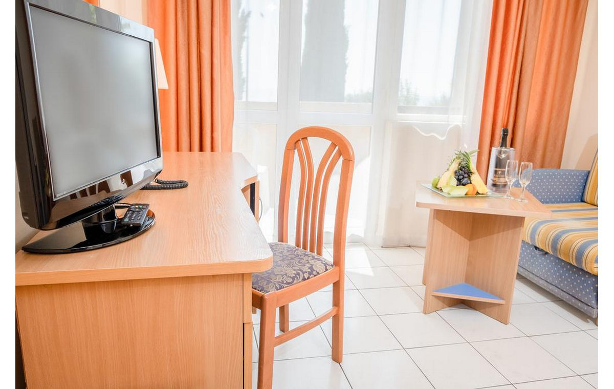 Standardne sobe (max. 2+2 osoba, 2 standardna kreveta i sofa – 120/190cm ) imaju kupatilo, balkon ili terasu, TV, telefon, sef (uz doplatu) centralnu klimu