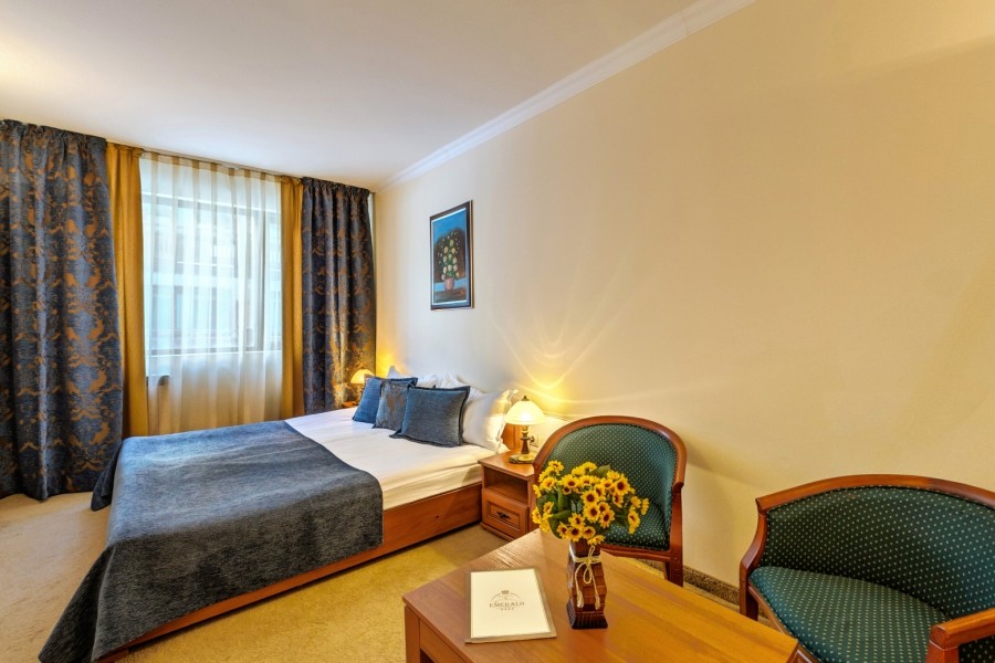 Smeštaj: Hotel Emerald Spa Bansko raspolaže sa ukupno 107 smeštajnih jedinica raspoređenih na 5 spratova i to: 40 standarnih soba i studija, 25 porodičnih soba, 40 jednosobnih apartmana i 15 dvosobnih apartmana.