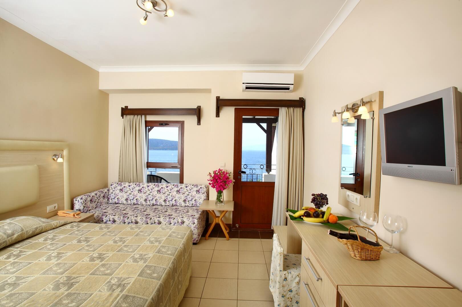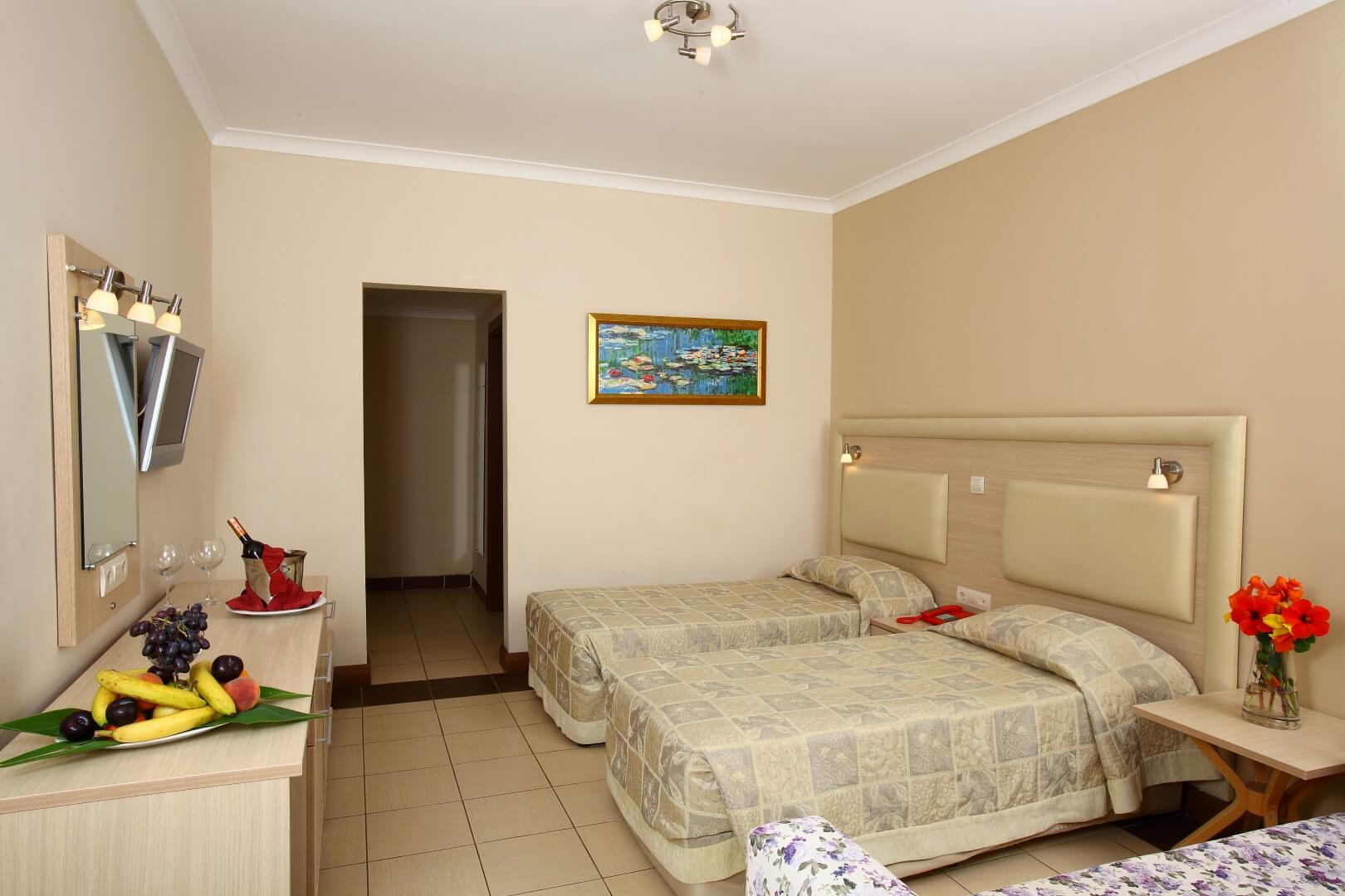 Sobe: Hotel broji ukupno 184 standardne sobe, sa pogledom na more ili na kopno, površine su 22m² i namenjene su za max 3 odrasle osobe. Sve sobe poseduju kupatilo sa tušem, fen za sušenje kose, telefon, televizor, mini bar (prazan), sef (uz doplatu), individualni klima uređaj, balkon ili terasu.