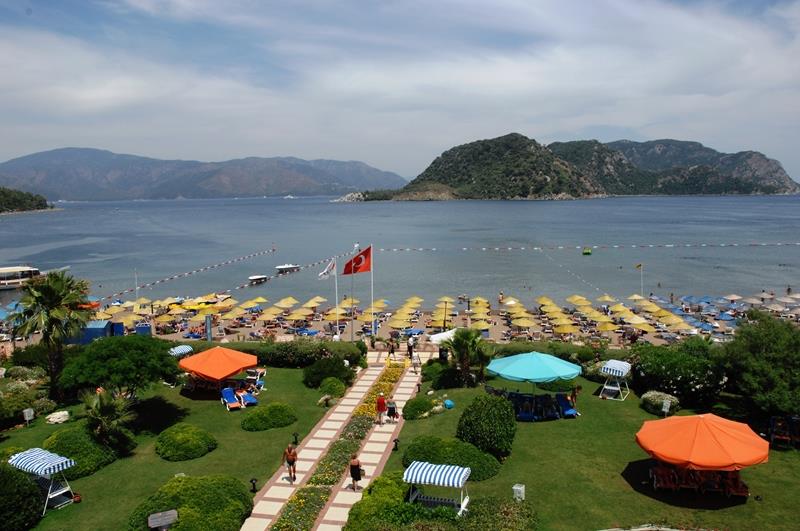 Hotel Marti La Perla, Marmaris (Turska) - Hotel se nalazi u slikovitom zalivu na peščano-šljunkovitoj plaži koja poseduje plavu zastavicu za čistoću plaže i mora. Udaljen je 8 km od Marmarisa i 1 km od mesta Ičmeler, 105 km od aerodroma Dalaman u Bodrumu. Hotel je renoviran 2014. godine. Dozvoljen je boravak samo gostima +16 godina (adults only).