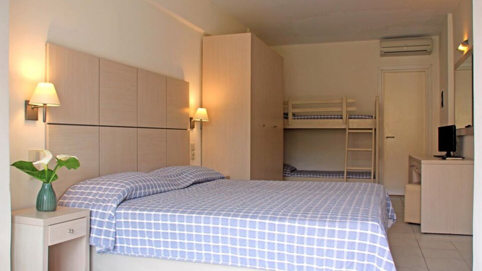 Family bungalow beach front: porodična soba kod plaže u bungalovu, oko 28m2, dva standard ili bračni ležaj i pomoćni ležaj.