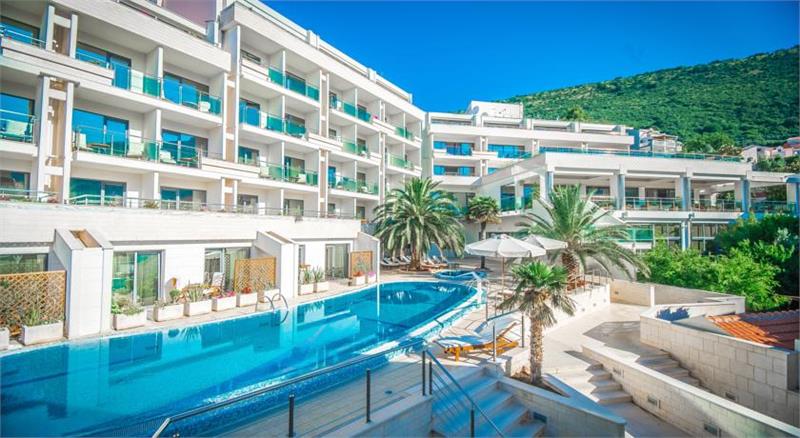 Hotelski sadržaji : Hotel raspolaže otvorenim bazenom, gde je za goste hotela korišćenje ležaljki, suncobrana i peškira besplatno. U javnim prostorijama hotela gosti mogu koristiti besplatan bežični internet.. Restoran ima izlaz na predivnu terasu, gde gosti mogu okusiti mnogobrojna primamljiva jela evropske, ruske i crnogoske kuhinje. U Hotelu se nalaze 2 bara, gde gosti bez sumnje mogu osetiti atmosferu neuobičajenog komfora i prvoklasnog servisa i obradovati sebe bilo kojim pićem. Hotel ima i parking za automobile, koji je takođe za goste hotela besplatan.