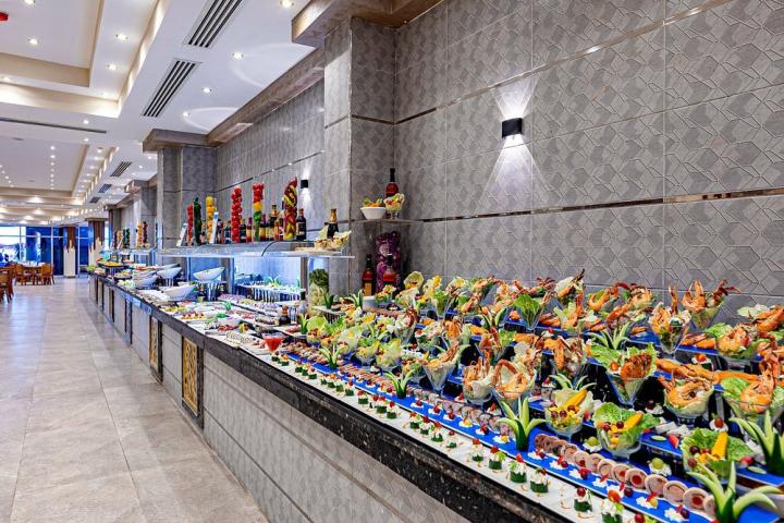 Gastronomska ponuda hotela obuhvata glavni restoran sa bogatim obrocima za doručak, ručak i večeru (samoposluživanje – izbor više jela po hotelskim pravilima) , kao i nekoliko à la carte restorana različitih kuhinja – italijanske, kineske, meksičke, libanske i indijske (Gosti mogu jednom tokom boravka večerati u svakom od à la carte restorana).