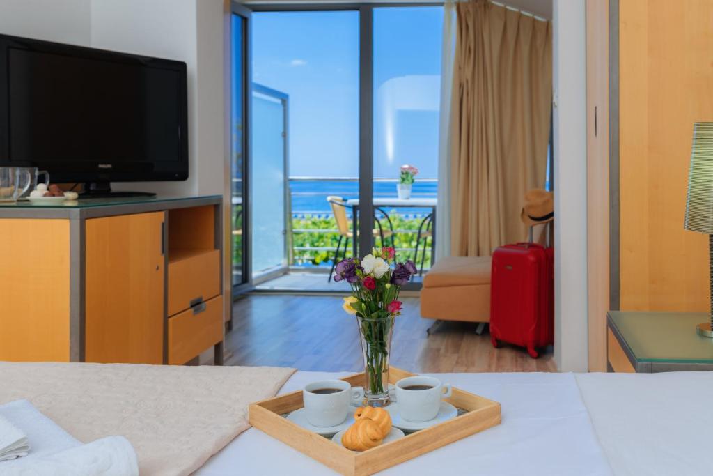 Sadržaj soba: sve sobe su opremljene klimom, frižiderom, kablovskom televizijom, wifi, sve imaju balkon ili terasu, neke imaju pogled ka moru.