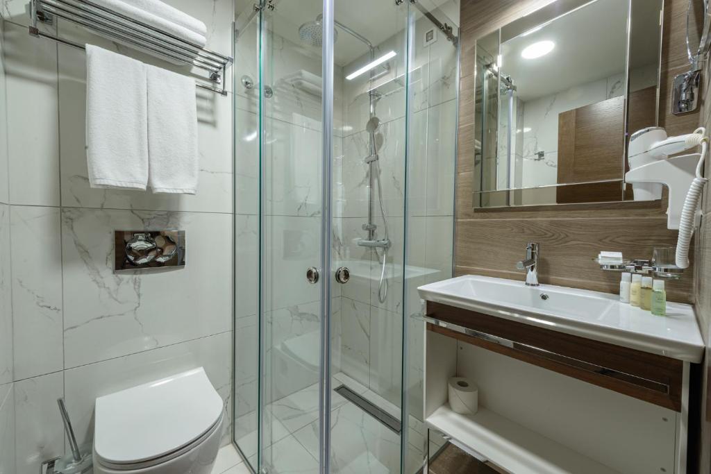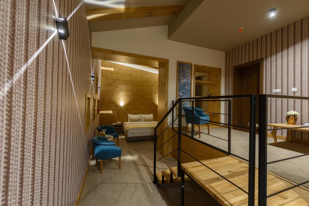 Deluxe spa soba - Još jedna specifična smeštajna jedinica u ponudi hotela, u opremljena privatnom saunom, hidromasažnom kadom u sklopu kupatila, odvojena staklenim zidom od spavaćeg dela u kojem je francuski ležaj dimenzija 200x220.