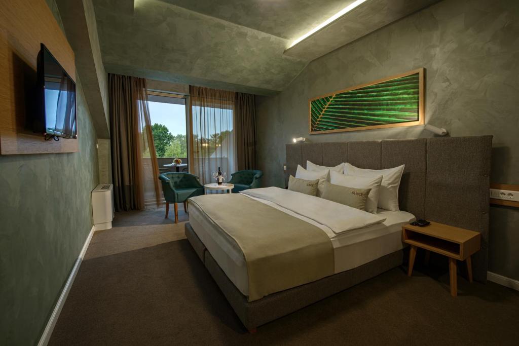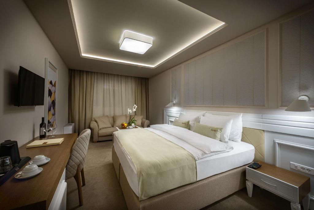 Superior spa soba - Komforna smeštajna jedinica, idealna za parove. Poseduje hidromasažnu kadu u okviru kupatila. Francuski ležaj za dve osobe dimenzija 200x220 pružiće Vam osećaj potpunog užitka.