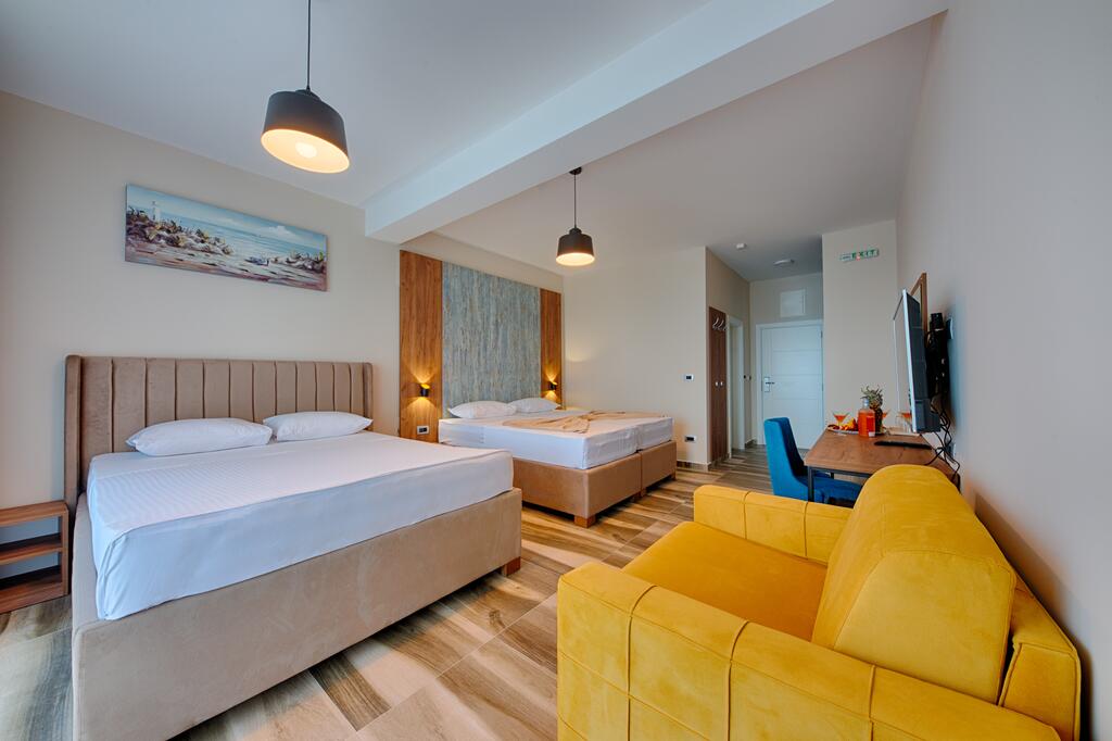 Hotel Sunset, Dobe Vode (Crna Gora) ima bar, privatni prostor na plaži i restoran. Hotel Sunset raspolaže recepcijom, restoranom, terasom, a na samo par koraka od plaže. Gostima su u okviru ovog hotela sa vrtom na raspolaganju klimatizovane smeštajne jedinice sa besplatnim WiFi internetom i sopstvenim kupatilom. Ponuda objekta obuhvata zabavni program u večernjim satima i poslugu u sobi. Svaka hotelska soba ima garderober. Svaka soba u objektu Sunset ima radni sto i flat-screen TV. Kontinentalni doručak se služi svakog dana u smeštajnom objektu. Plaža Veliki pijesak je udaljena 5 metara od hotela. Najbliži aerodrom je Aerodrom Podgorica, udaljen 57 km od objekta Sunset.