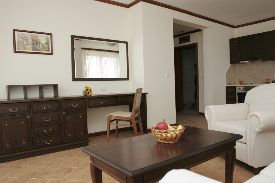 Studio (2+1): površine oko 30 m², nalazi se u anex zgradi, koja je iza glavne zgrade, francuski ležaj ili dva odvojena kreveta i sofa na razvlačenje, kuhinja. Maksimalno dvoje odraslih + jedno dete do 11.99 god ili tri odrasle osobe