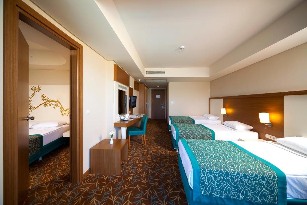 Sadržaj: glavni restoran i 5 a la carte restorana, 5 barova, poslastičarnica, 2 otvorena bazena, tobogani, privatna plaža, sportovi na vodi, spa i welness centar sa zatvorenim bazenom, đakuzi, sauna, tursko kupatilo, hamam, masaže, fitnes centar, dečiji klub, odbojka na plaži, košarka, mini fudbal, teniski teren, gimnastika u vodi, pikado, stoni tenis, bilijar, usluge lekara, pranja veša, fotografa, frizera, mini market.
