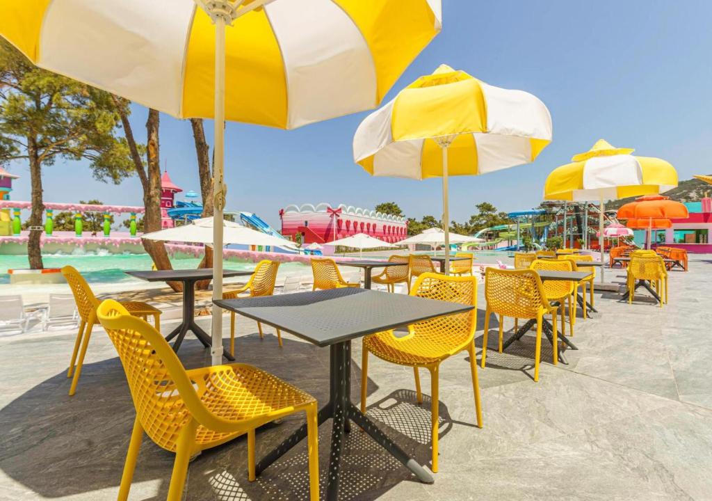 Glavni restoran služi doručak, ručak i večeru na otvorenom na bazi švedskog stola. Na licu mesta postoje 4 a la carte restorana koji služe odabrana jela italijanske, dalekoistočne, turske i morske kuhinje. U okviru objekta postoji poslastičarnica, a gosti takođe mogu da uživaju u raznim koktelima i kafama u 11 barova na licu mesta.