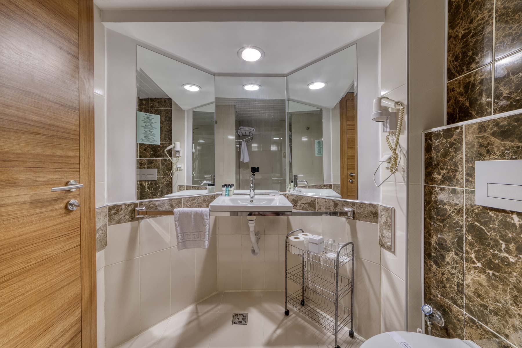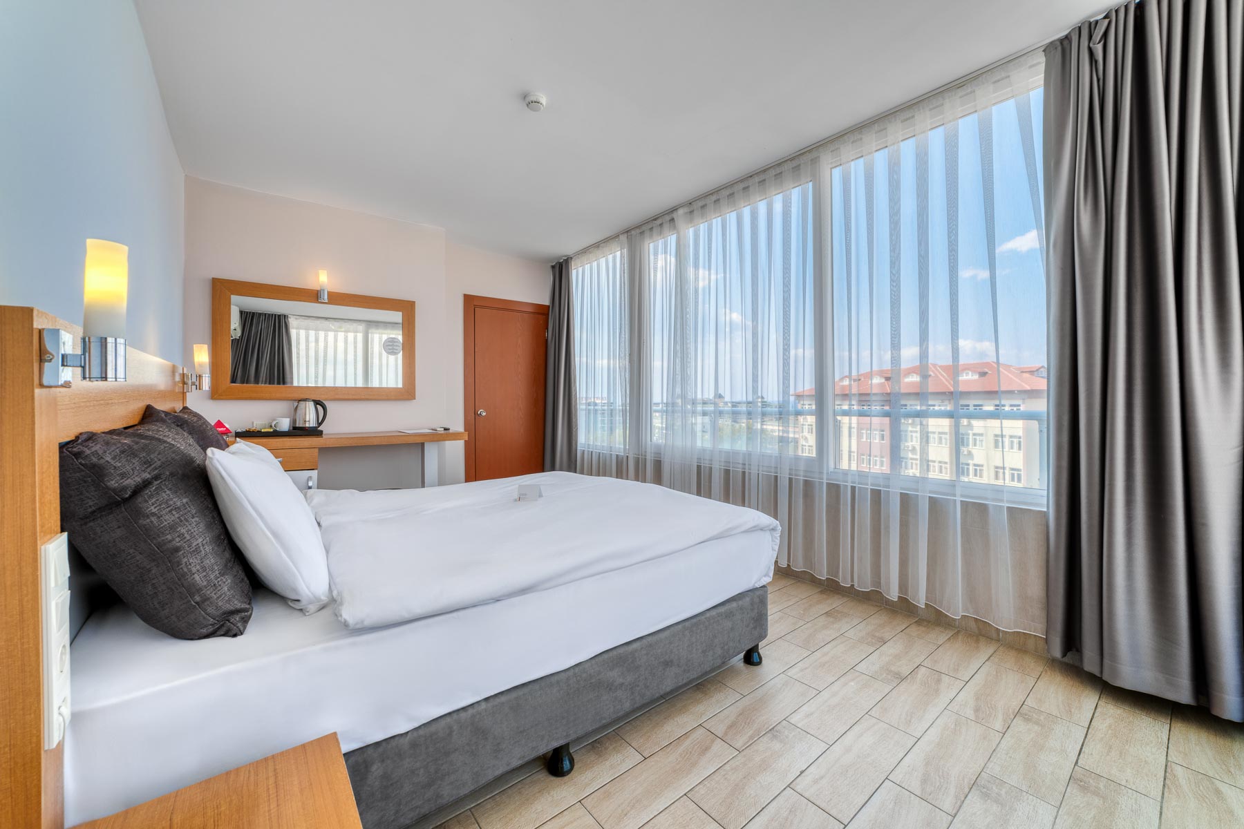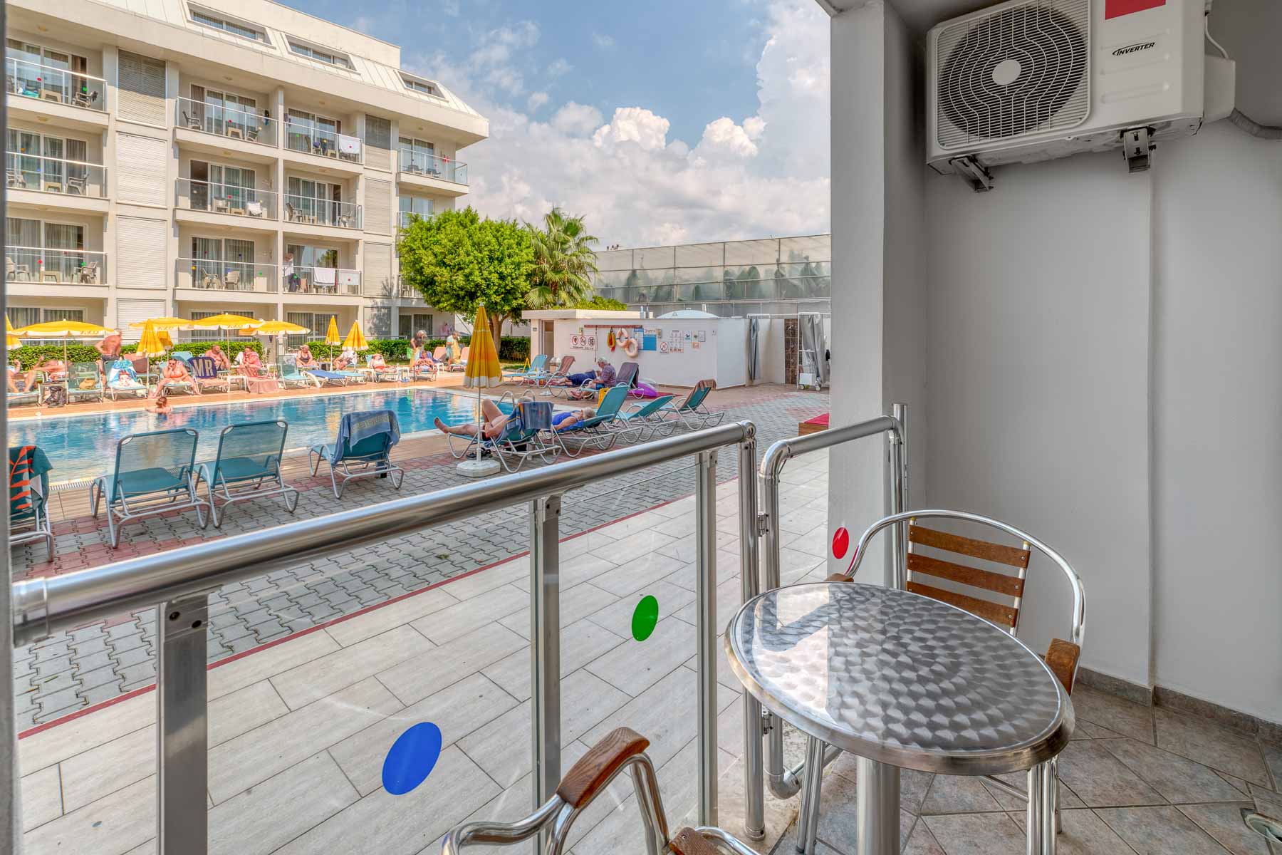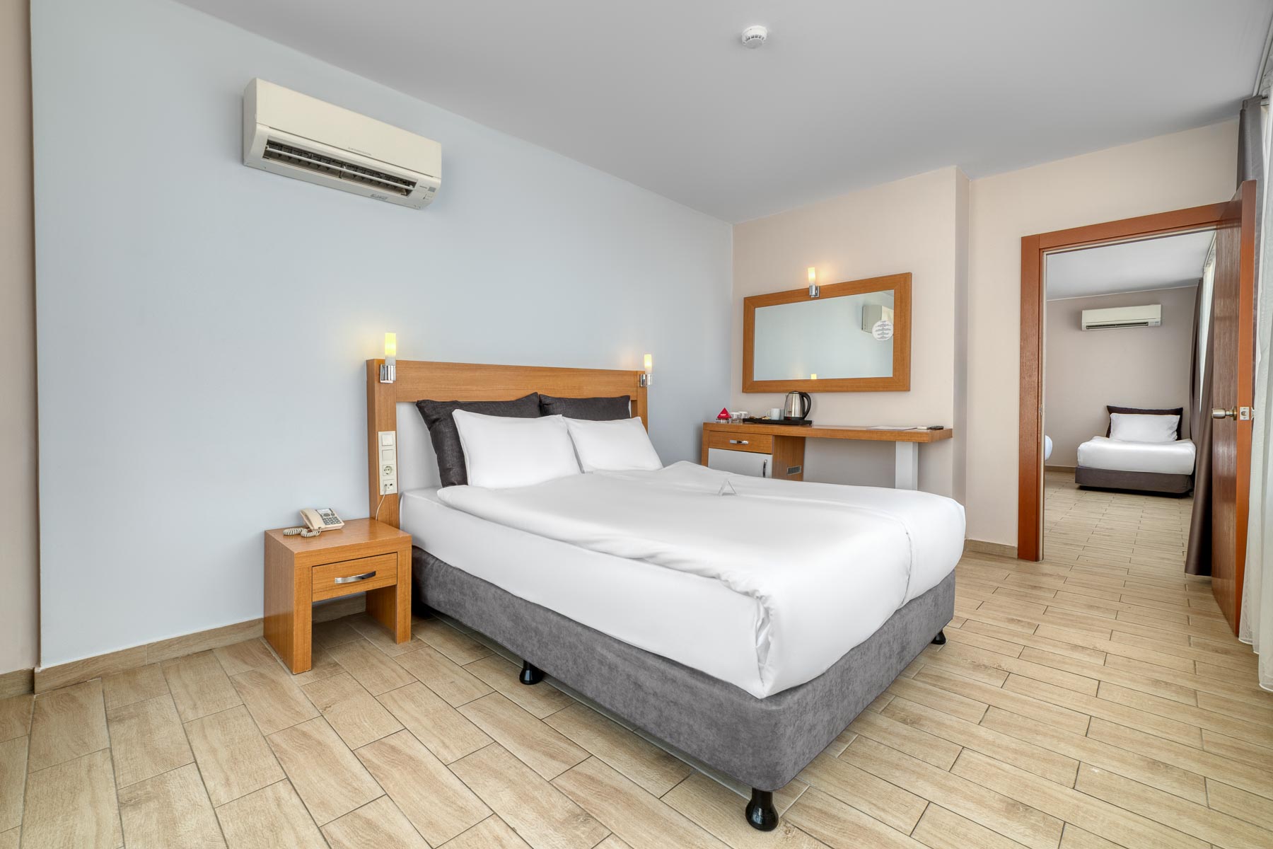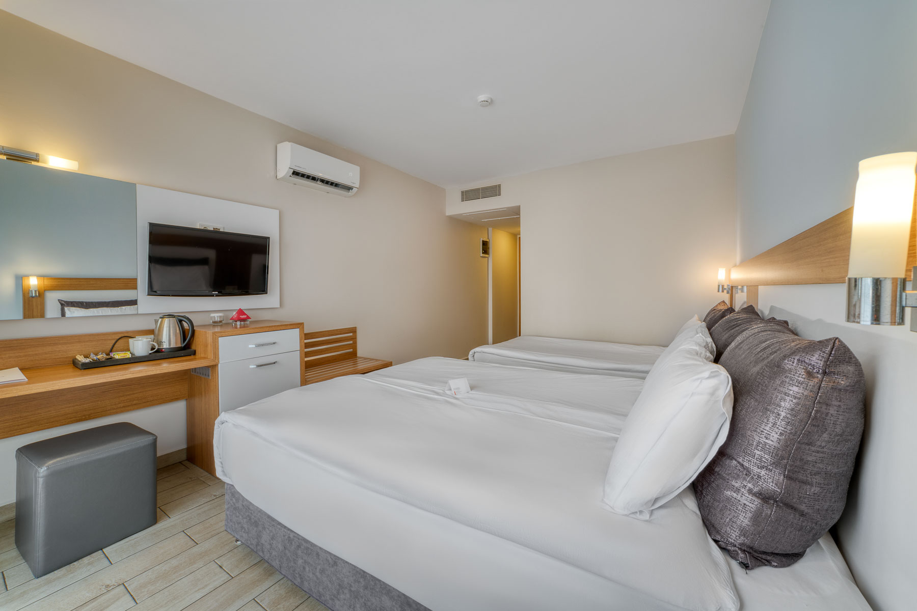 Hotel raspolaže sa ukupno 225 smeštajnih jedinica raspoređenih u dve zgrade. U ponudi su standardne sobe (23–26 m², spavaća soba, kupatilo, maksimalno 2+1 osobe), porodične sobe (35–40 m², dve spavaće sobe, kupatilo, maksimalno 4 osobe) i Terrace Facing Pool sobe (23–26 m², prizemne sobe sa pogledom na zajednički bazen, maksimalno 3 osobe). Sve sobe imaju kupatilo sa tuš kabinom i fenom, split klimu, direktnu telefonsku liniju, mini bar sa svakodnevno dopunjavanom vodom, sef uz doplatu, set za čaj i kafu, pločice, SAT TV i muzičke kanale, Wi-Fi i balkon.
