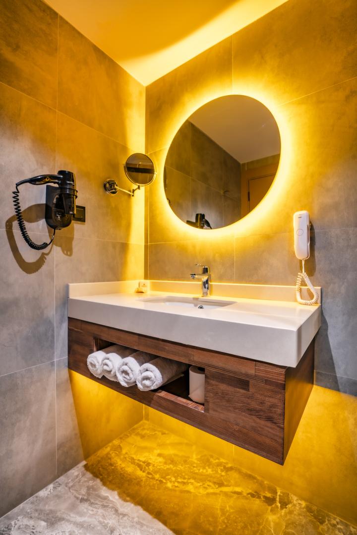 Hotel se sastoji od glavne četvorospratne zgrade sa ukupno 102 sobe koje se dele na: 94 standardne sobe (max 3 osobe, 21 m²) i 8 dvosobnih porodičnih soba (2 sobe odvojene vratima, max 4 osobe, 40 m²). Svaka soba ima: individualni klima uređaj, kupatilo, mini bar (voda-na dan dolaska), TV, sef (uz doplatu), Wi-Fi internet (besplatno), fen za sušenje kose, telefon, balkon.