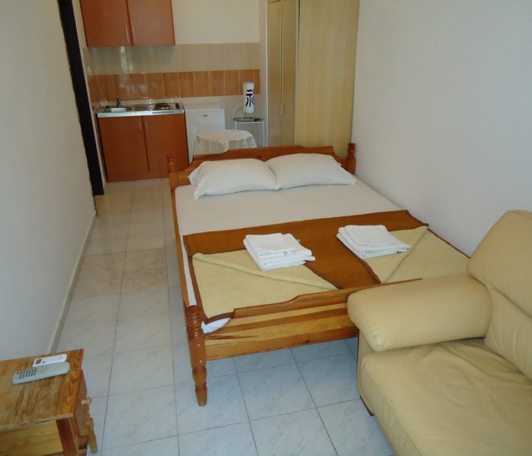 Smeštaj: Apartmani poseduju dnevni boravak s kuhinjom, spavaća soba s bračnim krevetom, kupatilo sa kadom i fenom za kosu, klima uređaj, SAT TV, Wi-Fi internet, pegla i balkon s pogledom na more. Sobe poseduju spavaća soba s bračnim krevetom i jednim dodatnim krevetom, kupatilo sa tuš kabinom i fenom, klima uređaj, SAT TV, Wi-Fi internet, pegla i balkon.