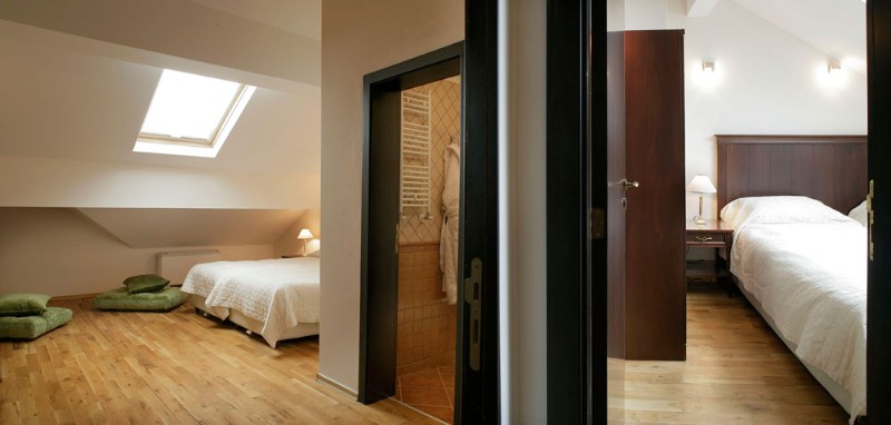 Trosobni apartman-mezonet /Grande Suites/ za smeštaj 6-8 osoba (175 m2): Tri posebne spavaće sobe na drugom nivou, 2 LCD TV, prostrana dnevna soba sa sofom na razvlačenje i sa kuhinskim delom, posedno kupatilo i WC. Smeštaj max 7 odraslih osoba ili 6 odraslih osoba i 2 dece..
