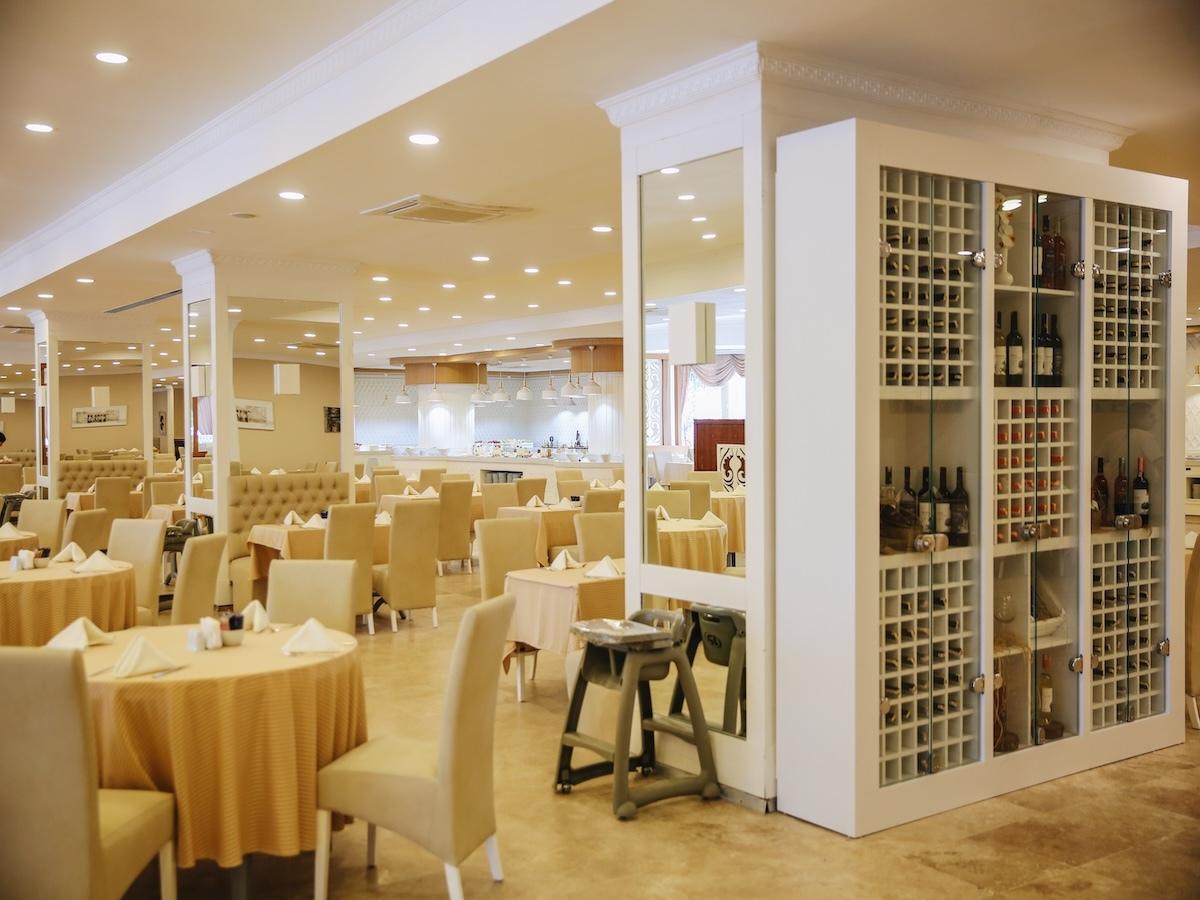 Usluga u hotelu je Ultra All Inclusive – doručak, ručak, večera (samoposluživanje – izbor više jela po hotelskim pravilima). Pored glavnog restorana, hotel nudi 3 a la cart restorana (riblji, turski i italijanski) i 6 barova (lobby, beach, pool, coffee shop, feel good grab to go, 24/7).