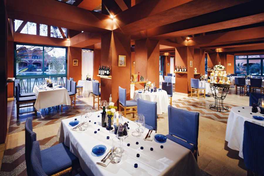 Hotelski sadržaj: Recepcija, 8 restorana (restoran Oriental 1001 sa regionalnom i internacionalnom kuhinjom, restoran La Piscina sa italijanskom kuhinjom itd.), više barova (bar Miramar je sa živom muzikom), 2 otvorena bazena, Wi-Fi internet, na javnim mestima u hotelu, mali tržni centar, Spa & Wellness centar (fitnes, masaža, razni tretmani itd.), teretana, animacija, stoni tenis, bilijar, dečije igralište, razni sportovi na vodi itd. Hotelska plaža je obezbeđena kamenim bedemom, a pošto je cela obala sastavljena iz više laguna, postoji i deo prilagođen kupanju sa direktim ulazom u vodu sa peščanom plažom, kao i deo sa koralnim grebenom. Ležaljke i suncobrani na plaži su besplatni.
