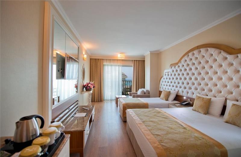 Sadržaj hotela: Recepcija,glavni restoran,a la carte restorani,barovi,poslastičarnica,diskoteka,dečiji bazen,igralište,mini club,otvoren i zatvoren bazen,aqua park sa toboganima,fitness centar,stoni tenis,pikado,odbojka na plaži,tursko kupatilo,parno kupatilo,sauna,masaže