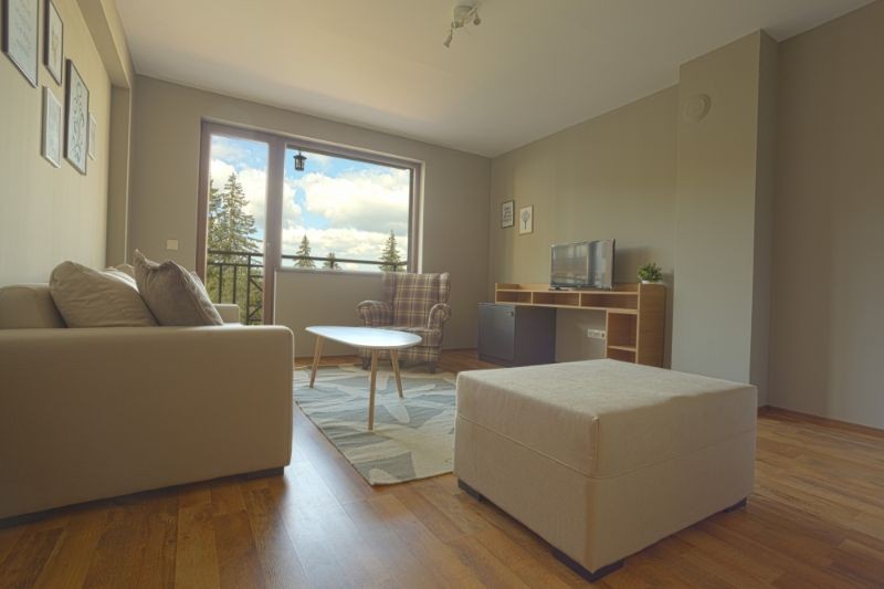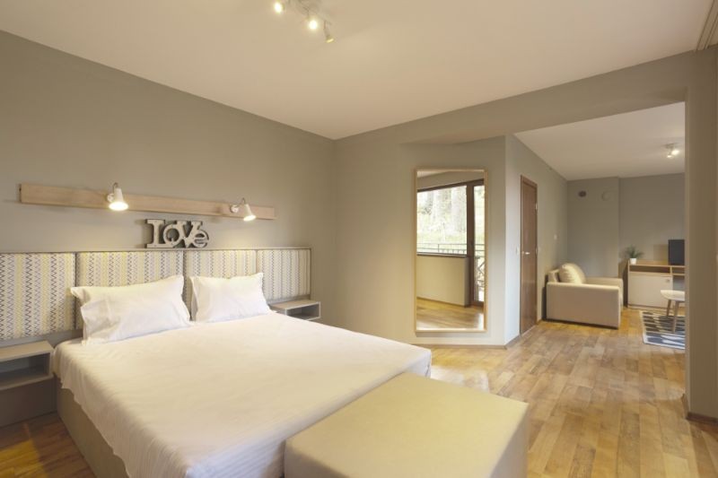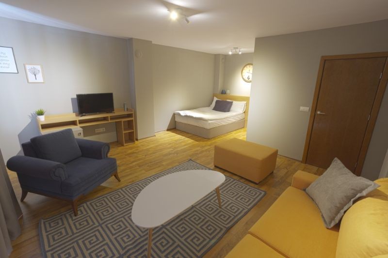 Jednosobni apartman za smeštaj 2-4 osobe (2+2): spavaća soba sa francuskim ležajem, dnevni boravak sa sofom na rasklapanje. Namenjen smeštaju porodica sa najviše dvoje dece ili troje odraslih + jedno dete.