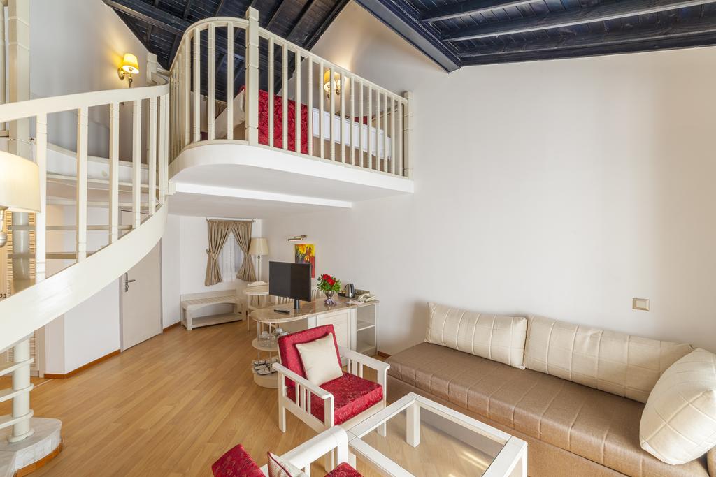 Hotel se sastoji od glavne i club zgrade. Hotelska zgrada: -Standardne sobe sa pogledom na kopno -Standardne sobe sa pogledom na more Club zgrada: -Club superior sobe -Club porodične sobe -Club duplex porodične sobe -Club bungalovi Sve sobe imaju kupatilo sa kadom ili tuš kabinom,fen, mini bar (dopunjava se svakodnevno), klimu,telefon,sef (uz doplatu), SAT TV, balkon ili terasu **Wi-fi je besplatan ali slabije brzine