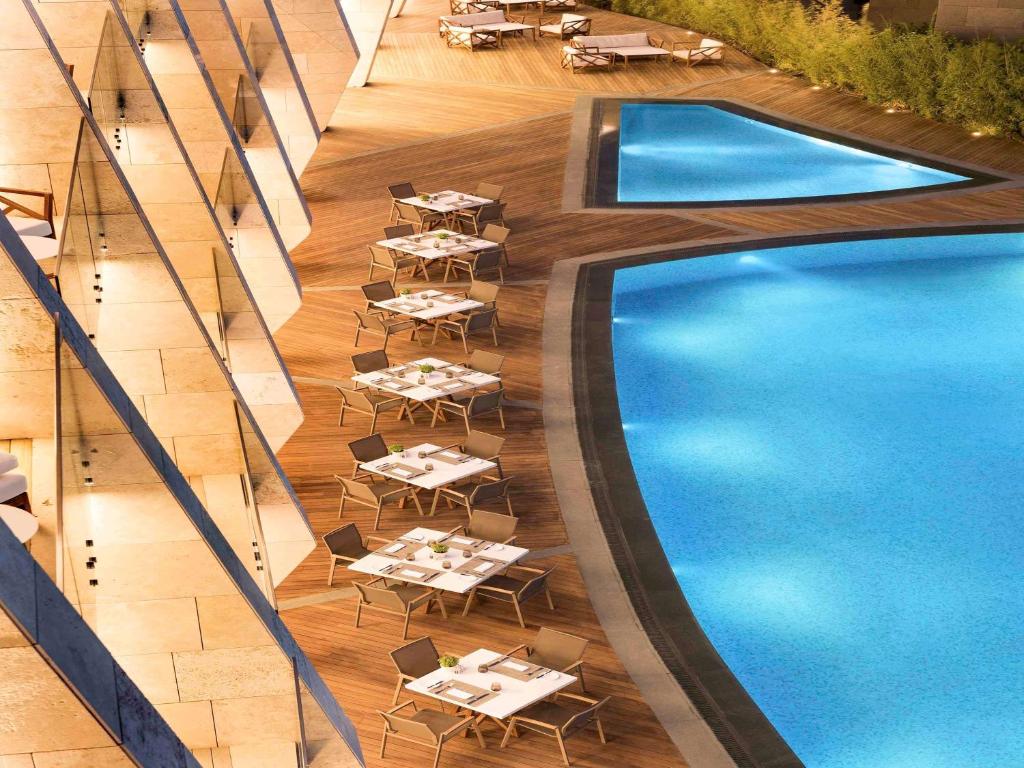 -noćenje sa doručkom (samoposluživanje – izbor više jela po pravilima hotela).Pored glavnog restorana gostima je na raspolaganju i Beach bar and Restaurant, Cafe Swiss, Lobby bar, Yuhi bar i italijanski restoran Trattoria La Scarpetta.