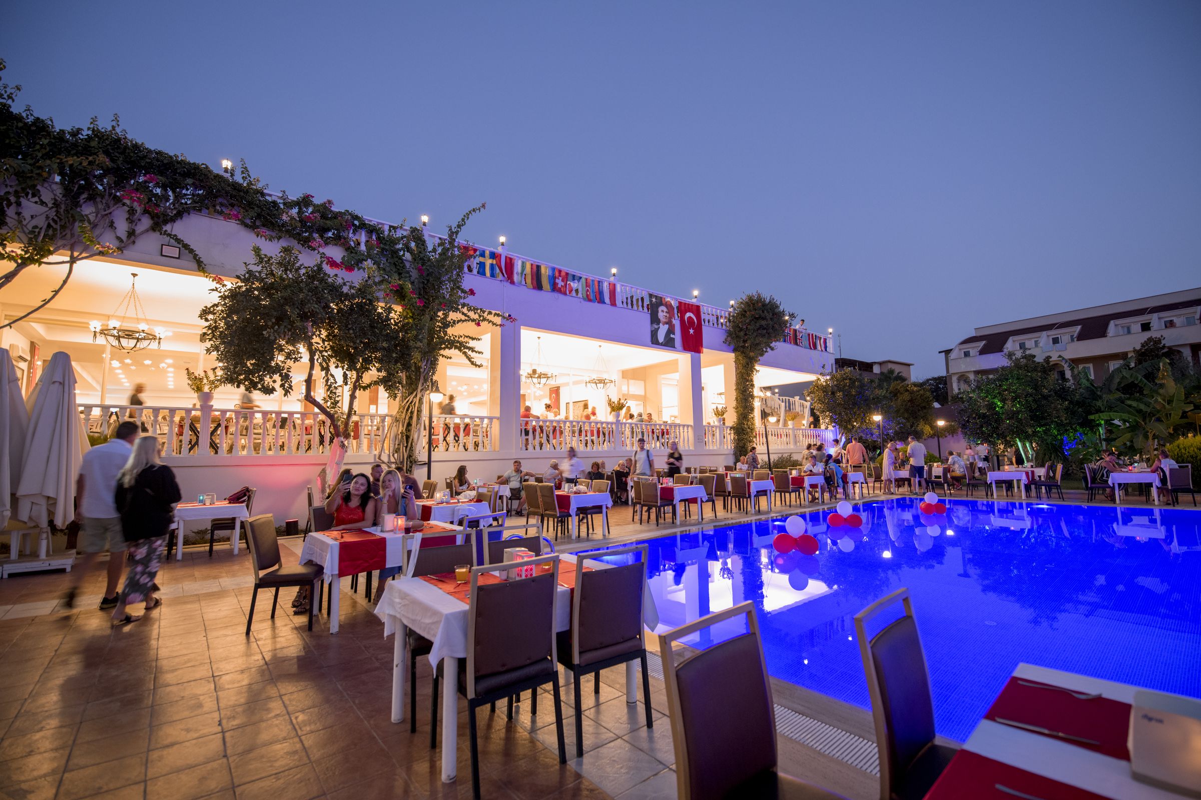All inclusive – samoposluživanje, izbor više jela u glavnom restoranu: doručak, ručak, večera. U koncept su još uključene užine, lokalna alkoholna i bezalkoholna pića. Gostima je dostupan a’la carte restoran jednom u toku boravka ( plaća se 5 eur po odrasloj osobi) uz prethodnu rezervaciju. Uz doplatu: uvozna pića, sveže ceđeni sokovi, turska kafa, sva pića na plaži i u a’la carte restoranu.
