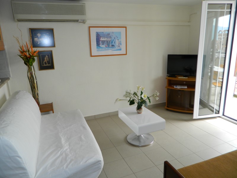 APARTMAN 1/4 – nalazi se na poslednjem spratu ove vile. Sastoji se od spavaće sobe u kojoj se nalazi ili 1 francuski ležaj ili 2 singl ležaja, dok se u drugoj prostoriji nalazi kuhinja i 1 singl ležaj i 1 ležaj na razvlačenje. Kuhinja poseduje trpezarijski sto sa stolicama, šporet, kao i osnovni pribor i posudje. Apartman poseduje kupatilo sa tuš/wc. Terasa poseduje garniture za sedenje i sa terase se pruža pogled ka moru.