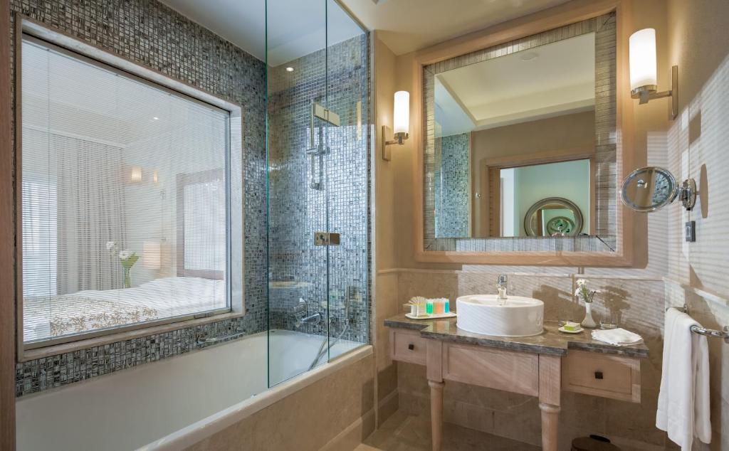 dva otvorena bazena, jedan zatvoreni bazen sa jacuzzi-jem, pešačku stazu oko poluostrva, glavni restoran, 2 à la carte restorana, nekoliko barova, Spa centar, fitnes centar.