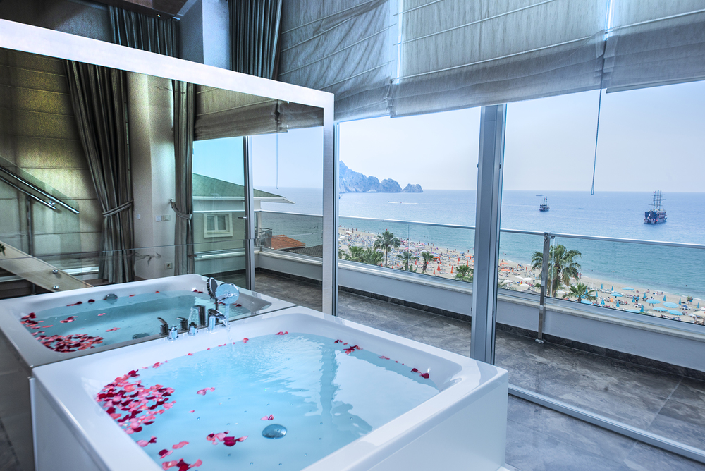 Nalazi se na 120 km od aerodroma u Antaliji, u centru Alanje, na Kleopatrinoj plaži.