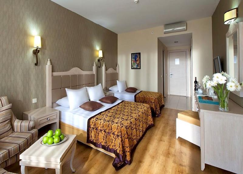 Smeštaj: Ukupan broj smeštajnih jedinica hotela Adalya Resort & SPA 5* je 210 raspoređenih u 2 zgrade. Sve sobe imaju kupatilo sa tuš kabinom,fen, mini bar (dopunjava se svakodnevno), klimu,telefon,sef (uz doplatu), SAT TV, balkon