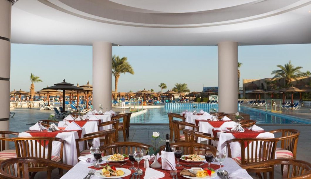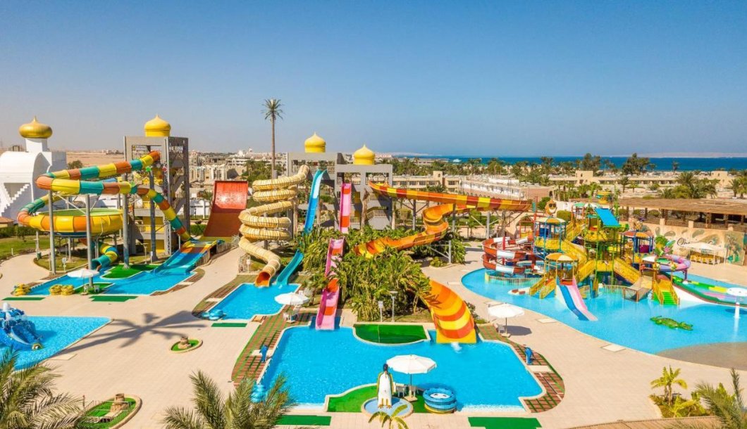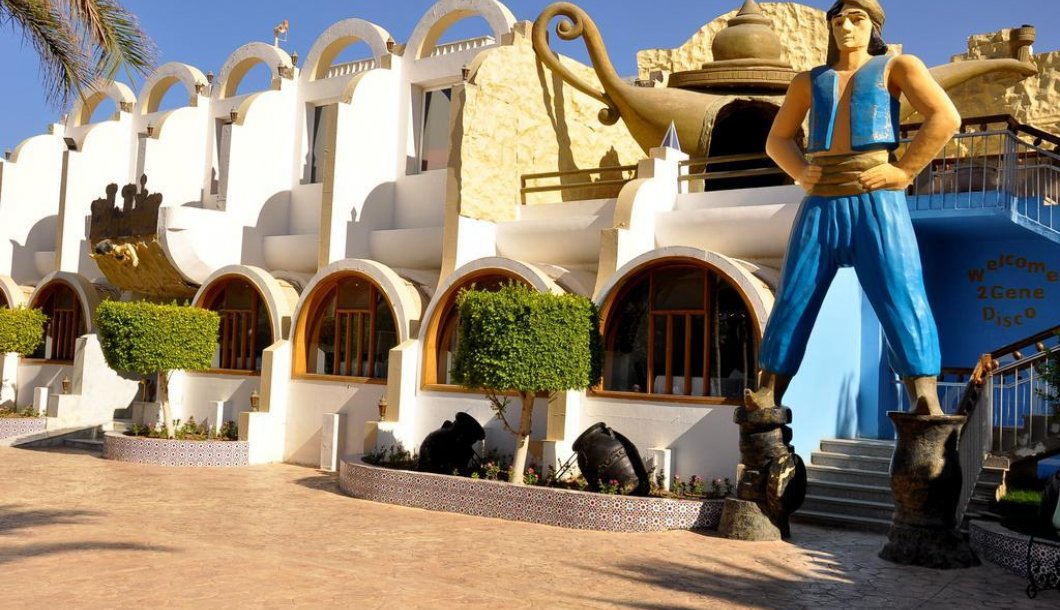 Hotel Aladdin Beach Resort 4*, Hurgada, Egipat, nalazi se u južnom delu Hurgade,Safagi na peščanoj plaži. Od aerodroma je udaljen 7 kilometara.