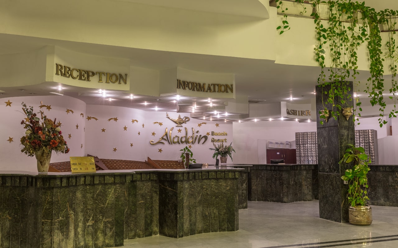 Smeštaj: Hotel Aladdin Beach Resort raspolaže sa 390 soba i sve sobe imaju klimu, TV, telefon, fridžider, room servis, krevetac je moguće obezbediti na zahtev, kao i sef koji se dodatno plaća.