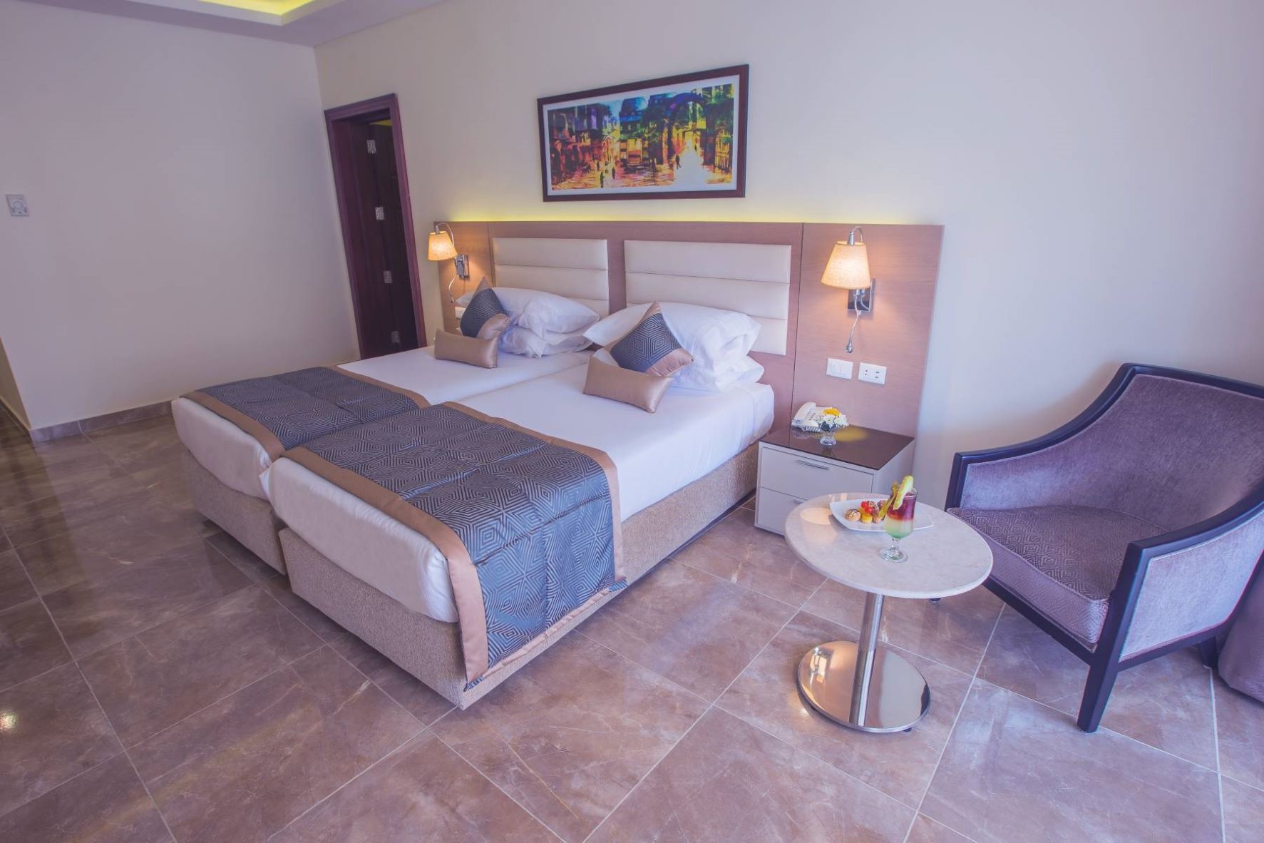 Hotel se nalazi iza hotela Dana Beach Resort, oko 900m od plaže do koje redovno vozi shuttle bus. Jedan manji deo je sa koralnim grebenom, što privlači veliki broj zaljubljenika u podvodni svet, a veći deo je lepo uređena kupališna zona sa plitkom vodom. Upotreba suncobrana i ležaljki je besplatna.
