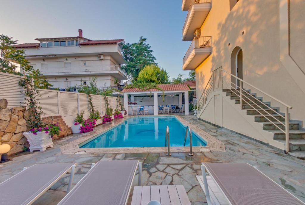 Sadržaj hotela: recepcija, ostava za prtljag, room service, wifi, restoran A la carte, bar. Hotel Alkyonis poseduje otvoreni bazen i bar kraj bazena u kome gosti mogu uživati. Suncobrani i ležaljke oko bazena su uključeni u cenu. Gosti mogu koristiti zatvoreni bazen i fitnes centar u obližnjem objektu Secret Paradise hotel&spa . Besplatan bežični internet je dostupan u celom objektu.