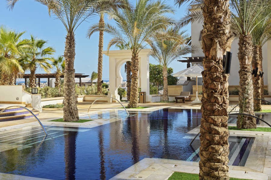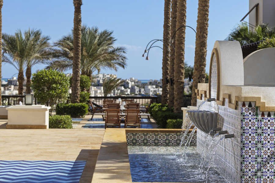 Hotelski sadržaj: Gosti hotela mogu besplatno da koriste Marina Beach plažu (ulaz, suncobrane i ležaljke), koja je udaljen oko 2,5km od hotela i do koje vozi shuttle bus, više puta dnevno. Peškiri za plažu se uzimaju u hotelu. Gostima su na raspolaganju glavni restoran Dunes,restoran The Piazza, kao i barovi – Mint Bar & Lounge, Piazza bar. Hotel ima 5 bazena (od kojih se 3 greje), spoljni jacuzzi koji se greje, teretanu, shuttle bus do marine, WiFi u javnim prostorijama, frizerski salon.