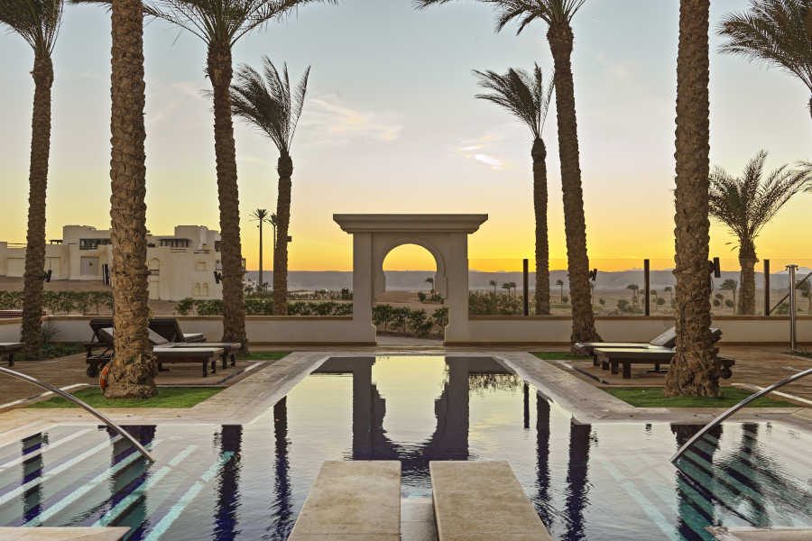 Ancient Sands Golf Resort 5*, El Gouna, Egipat, nalazi se oko 2 km od Abu Tig marine, oko 41 km od aerodroma i oko 28 km od centra Hurgade. Hotel je izgrađen u nubijskom stilu, raspolaže sa 148 smeštajne jedinice, glavni Dunes restoran i nekoliko barova.Hotel je idealan za ljubitelje golfa i poseduje jedan od većih golf terena, sa za sada izgrađenih 9 rupa, a u planu je još 9. Takođe poseduje i golf akademiju, kao i golf shop.