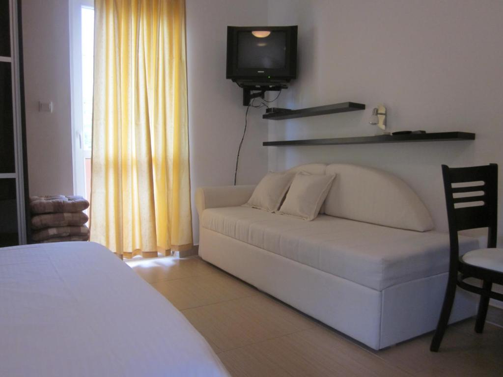 Svi klimatizovani studiji poseduju nameštenu terasu sa koje se pruža pogled na more. Pored toga svaki sadrži prostor za sedenje, TV i opremljenu kuhinju sa trpezarijom. Sopstvena kupatila opremeljena su tušem, fenom za kosu i besplatnim toaletnim priborom.