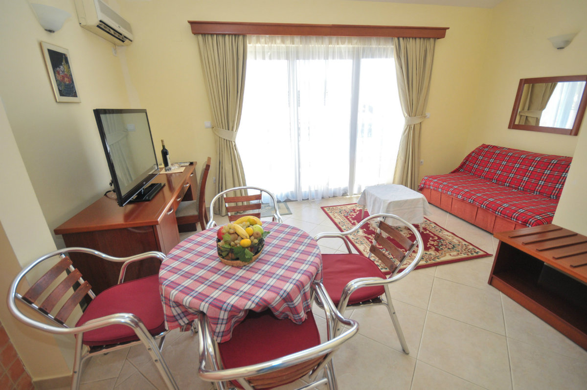 Smeštaj: Sve sobe su klimatizovane, sa TV aparatom, mini barom, sefom i balkonom. Apartmani imaju i veliku terasu od 25m2.